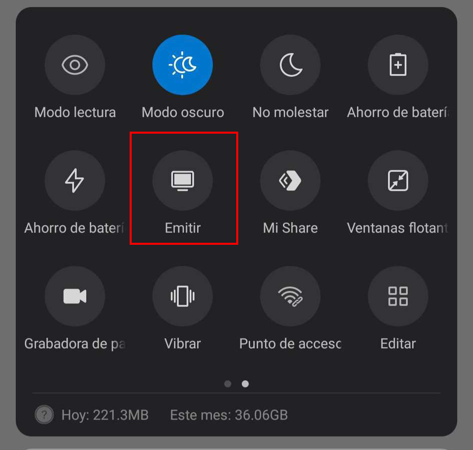 Desde opciones de duplicado de pantalla o transmisión inalámbrica.