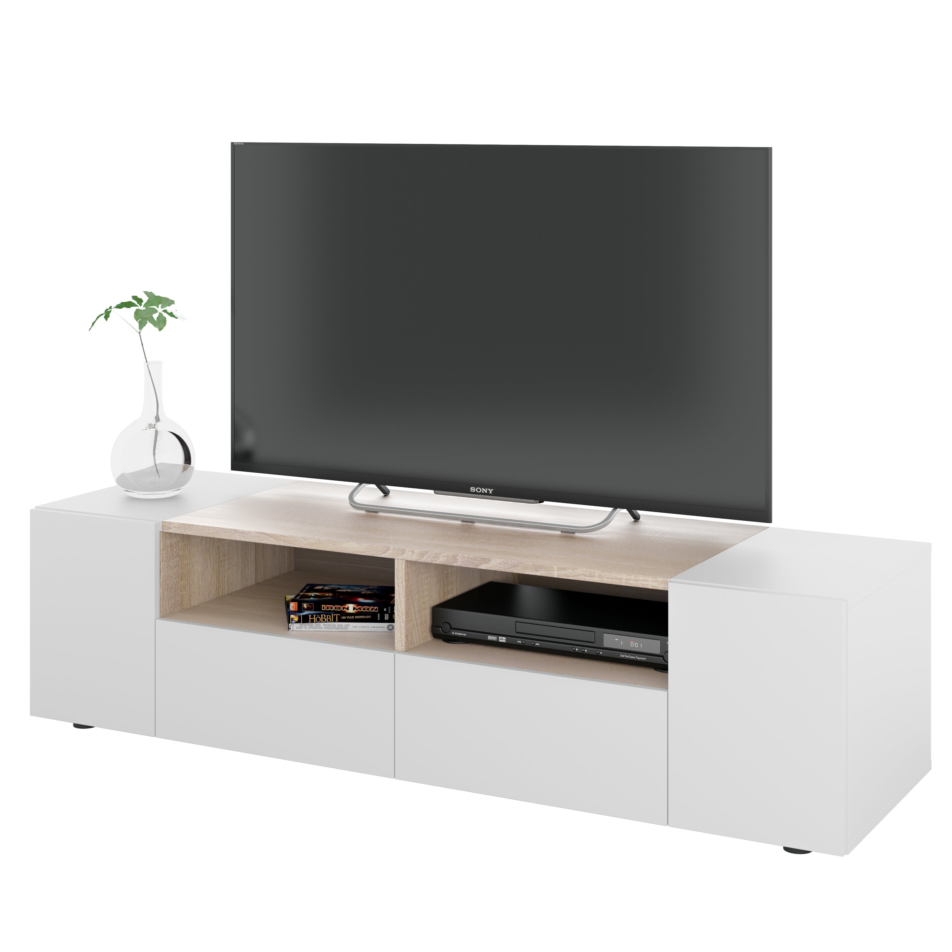 Mueble de TV Tamiko blanco con roble 138x36x42 cm (anchoxaltoxfondo)