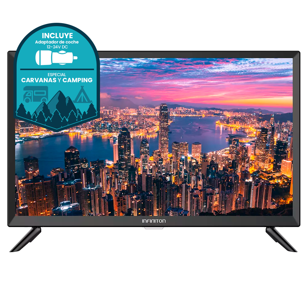 1) INFINITON | INTV-24CV80 – TV 24 Pulgadas | Televisor 24″ (60,96 cm) | HD Ready | Especial para Caravanas con Cargador 12 V | Modo Hotel | USB Recorder | 2 x HDMI 1.4 | Bluetooth | Audio 2 x 3 W