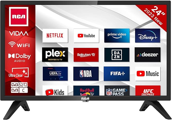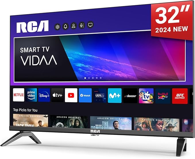 2) RCA Smart TV 32 Pulgadas LED HD WiFi Televisión con App Store, Sintonizador Digital, Prime Video, Netflix, Youtube, DAZN, Disney+, Pluto TV, Apoyado por VIDAA (VRS32HQ1, 2024) [Clase de eficiencia energética F]