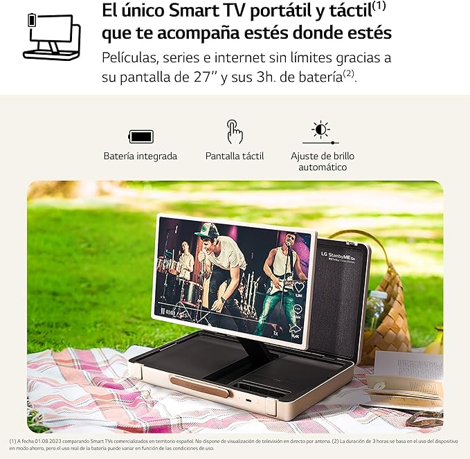 3) LG 27ART10AKPL 27″, StanbyME, Smart TV, Portátil y Táctil, HDR10, WebOS 6.0, Procesador Inteligente Alta Potencia