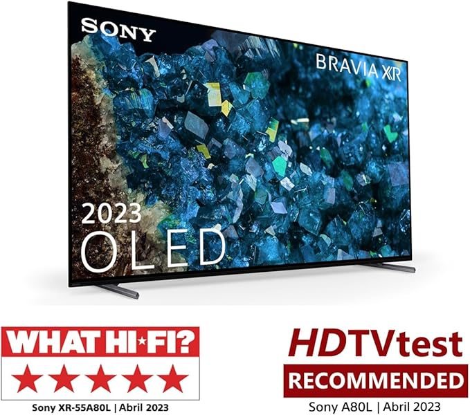 2) Sony BRAVIA XR-55A80L, 55 Pulgadas, TV OLED con 4K HDR, Smart Google TV, Eco Pack, Bravia Core, Óptimo para PlayStation5, Diseño Integral [Clase de eficiencia energética G]